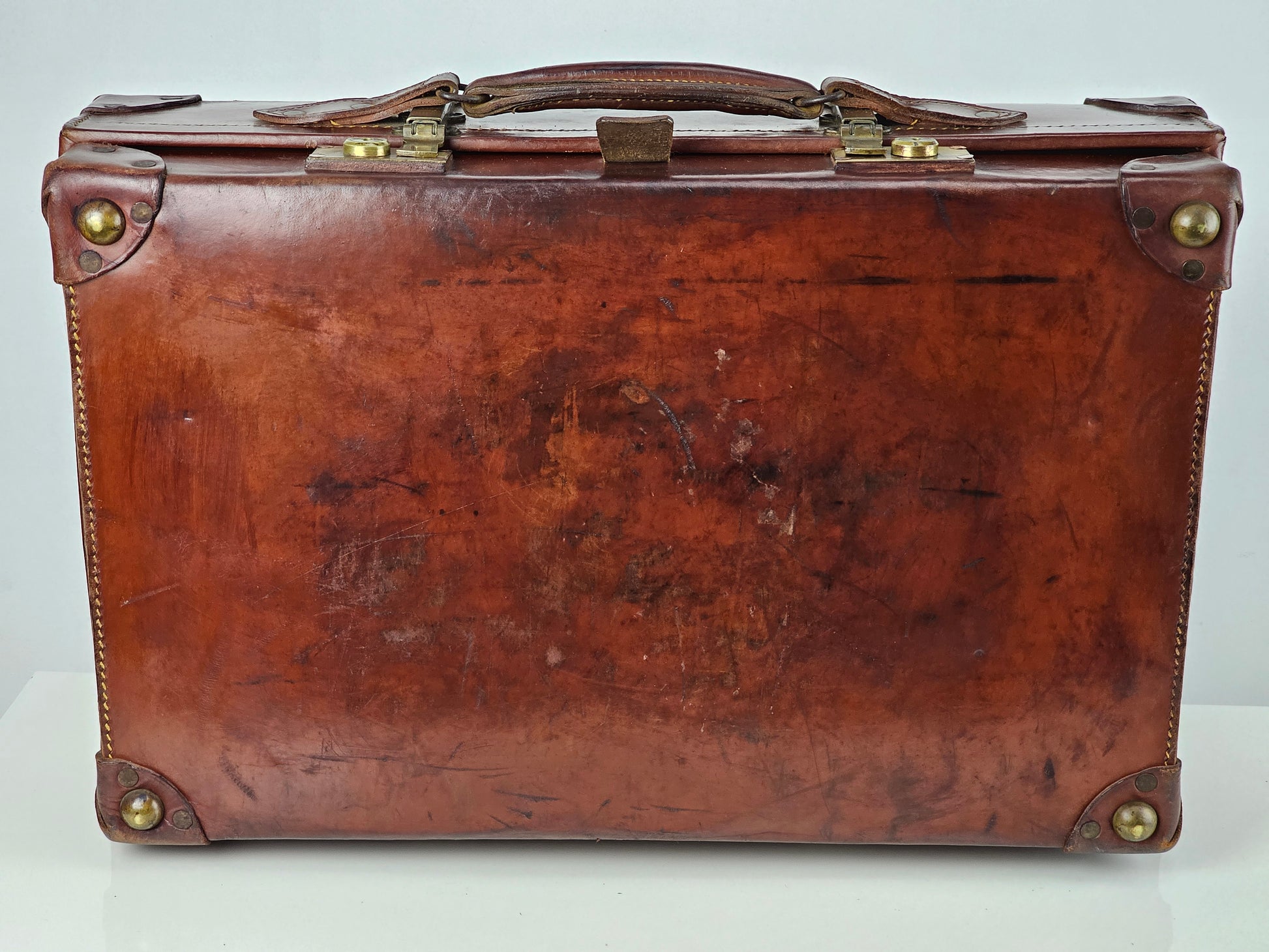 A great leather expanding suitcase in great condition, hand stitched with good brass catches, good patina. Clean condition within.