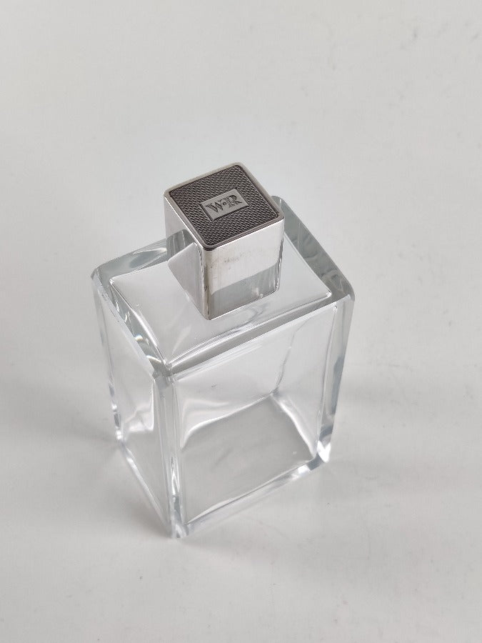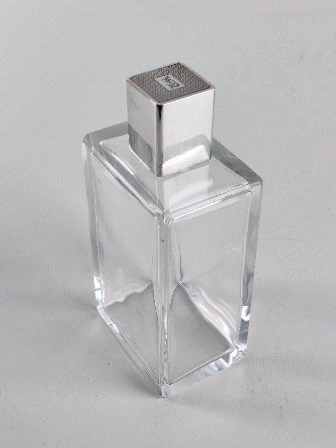 A fabulous very stylish Art Deco solid silver topped cologne/ scent bottle with glass stopper. This would be ideal for either male or female with its timeless design.