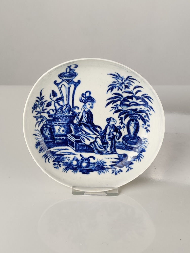 A fine Dr Wall 1st period Worcester blue and white saucer, (Circa 1760's), showing Mother & Child. The saucer is in good condition, with a small nibble (see photo). Beautifully made, this would make a great gift for a collector, or just to display yourself!
