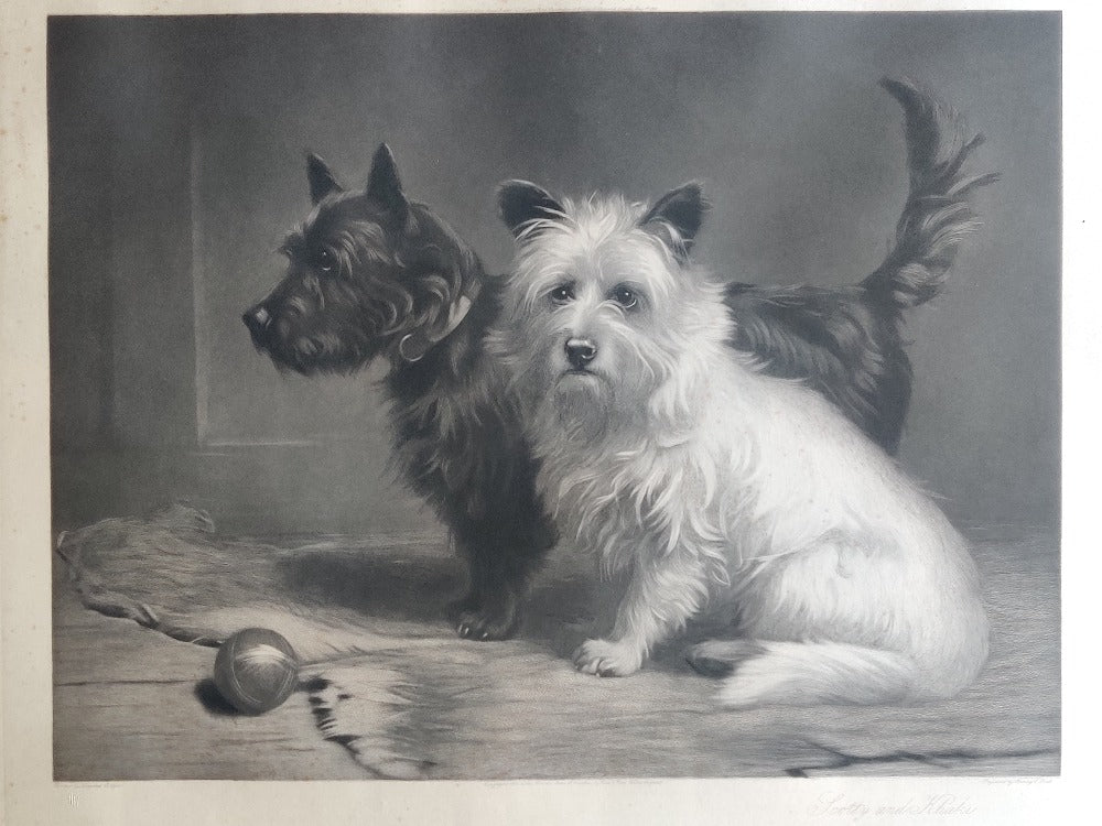 A large and beautiful engraving of Cairn and West Highland terriers Scotty And Khaki by