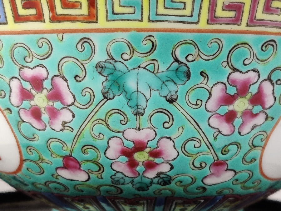 A good hand painted Chinese bowl early 20th century. (Black stand for display only).