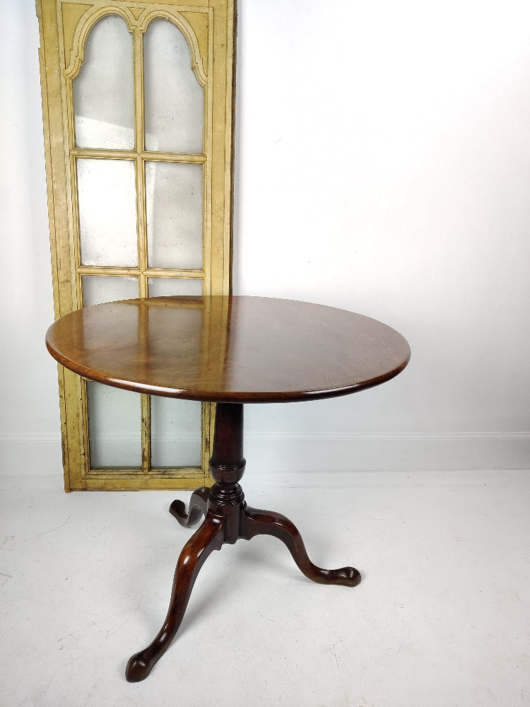 A fine Cuban mahogany Georgian tilt top table with a one piece mahogany top, good colour and patina on a gun barrel column. A good old solid repair to the base and minor old treated wood worm (see photos).
