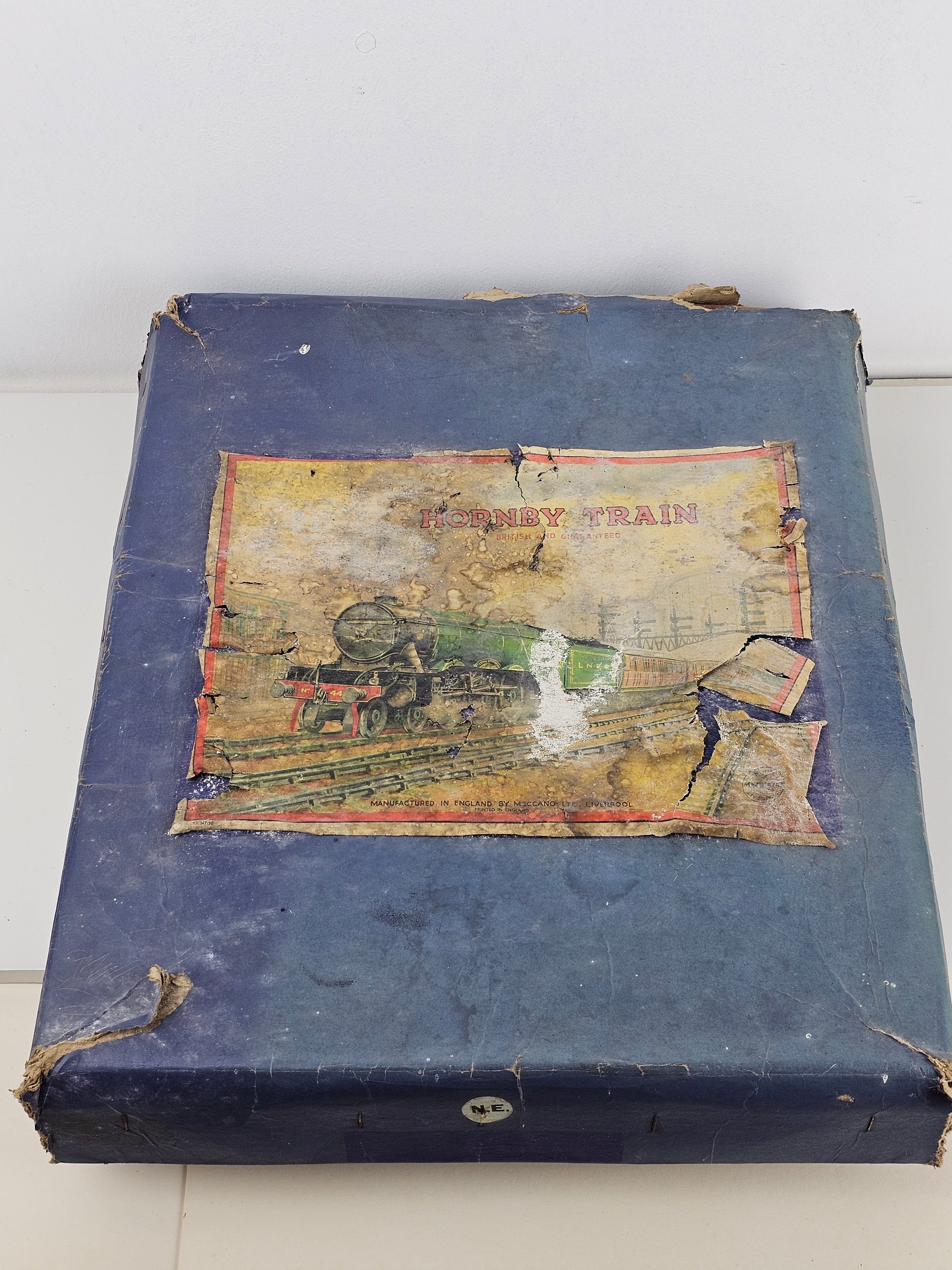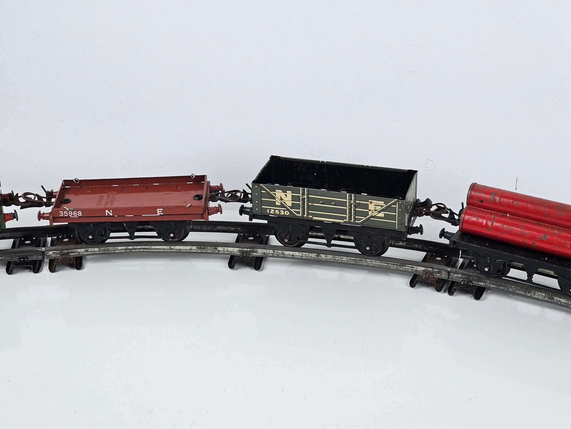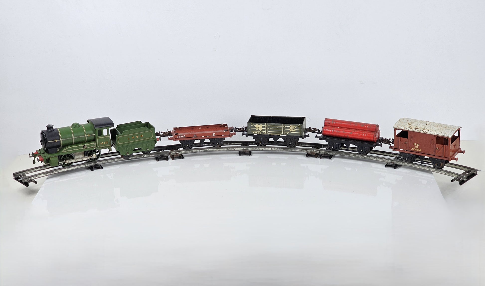 All aboard for fun with this vintage Hornby 'O' gauge LNER engine and tender! This clockwork set includes several goods wagons and a brake van, all tucked inside the original box with track. Fully working and ready to roll, it’s perfect for sparking joy in any train enthusiast’s or trip down memory lane.