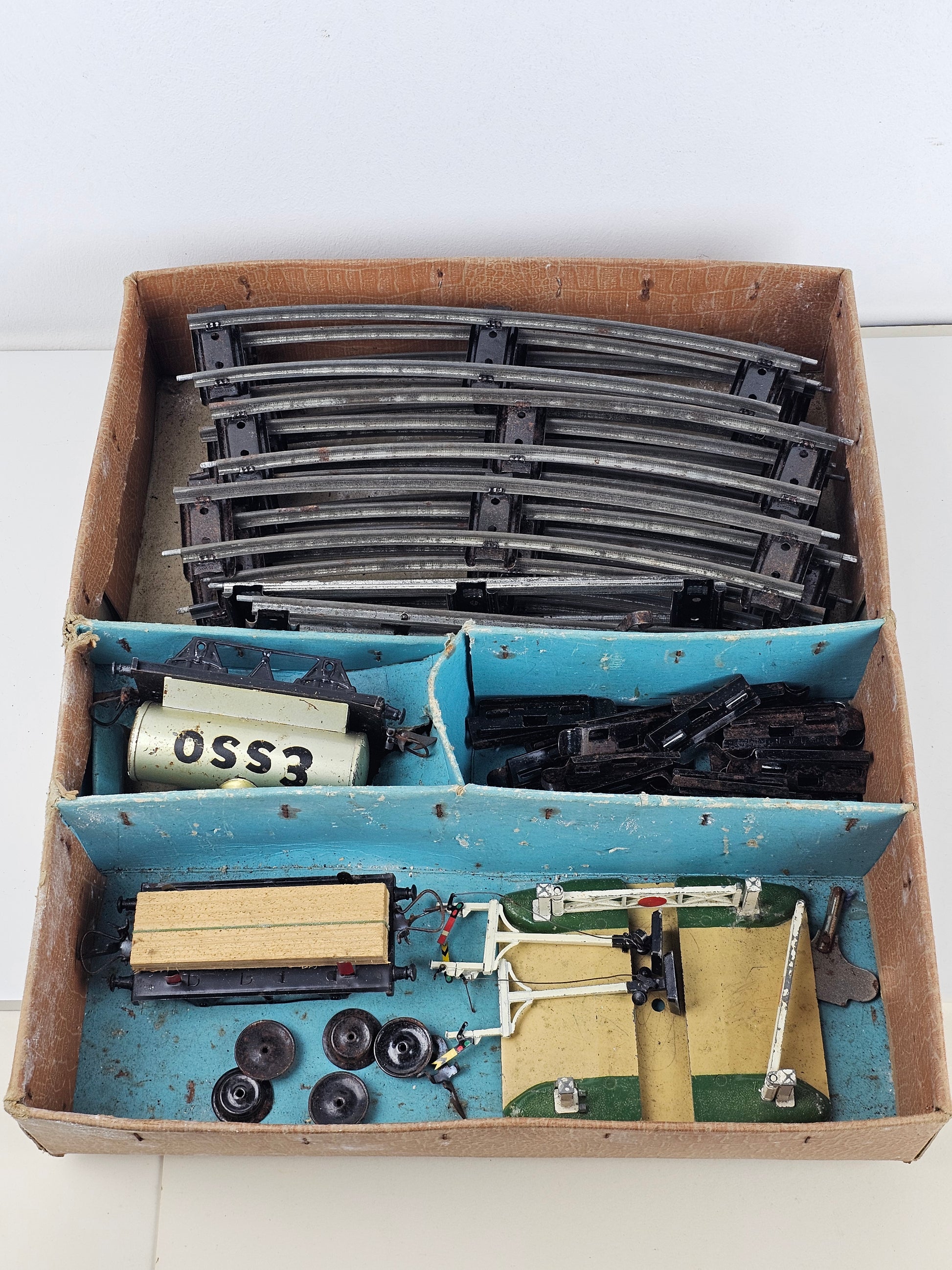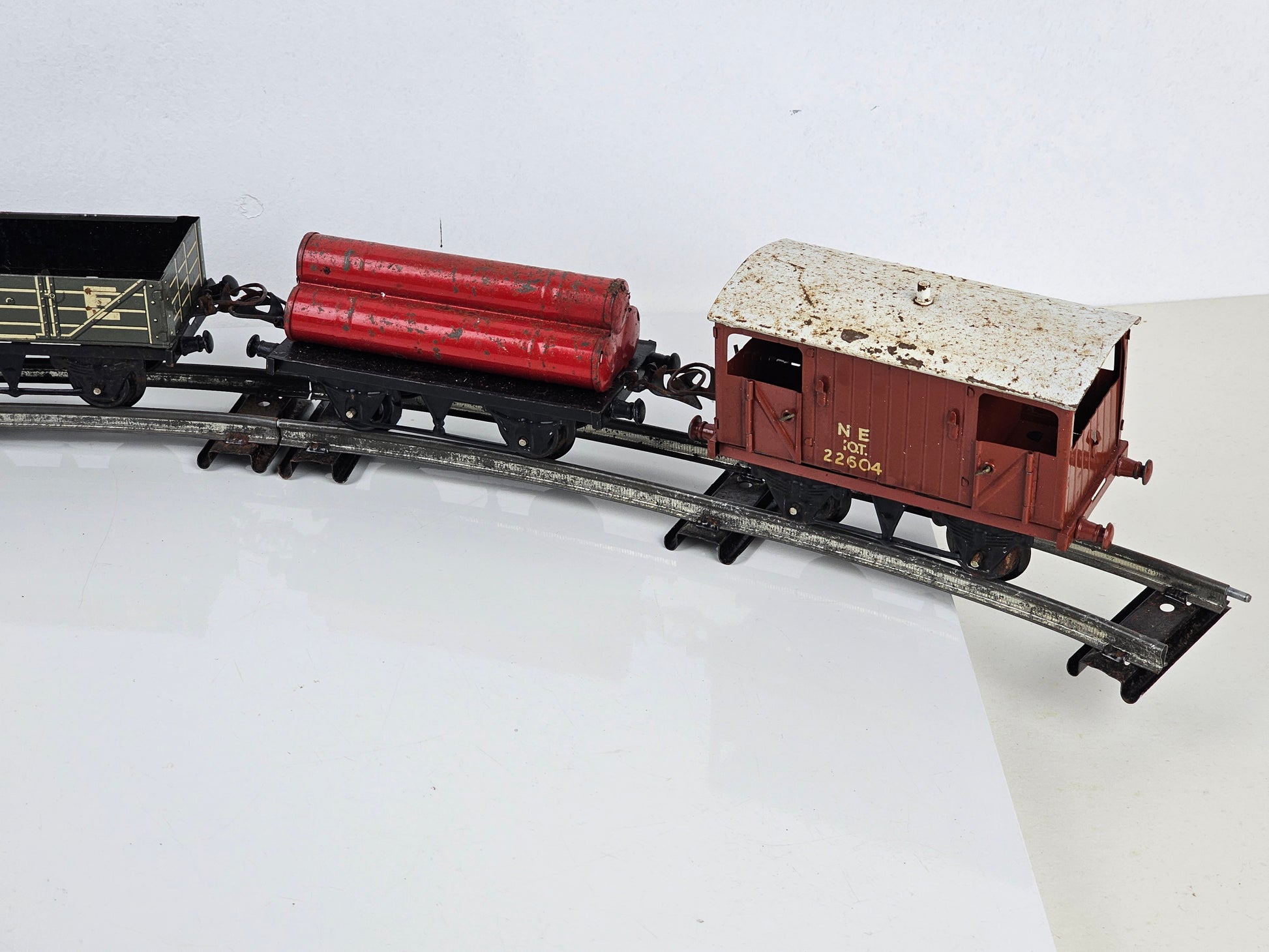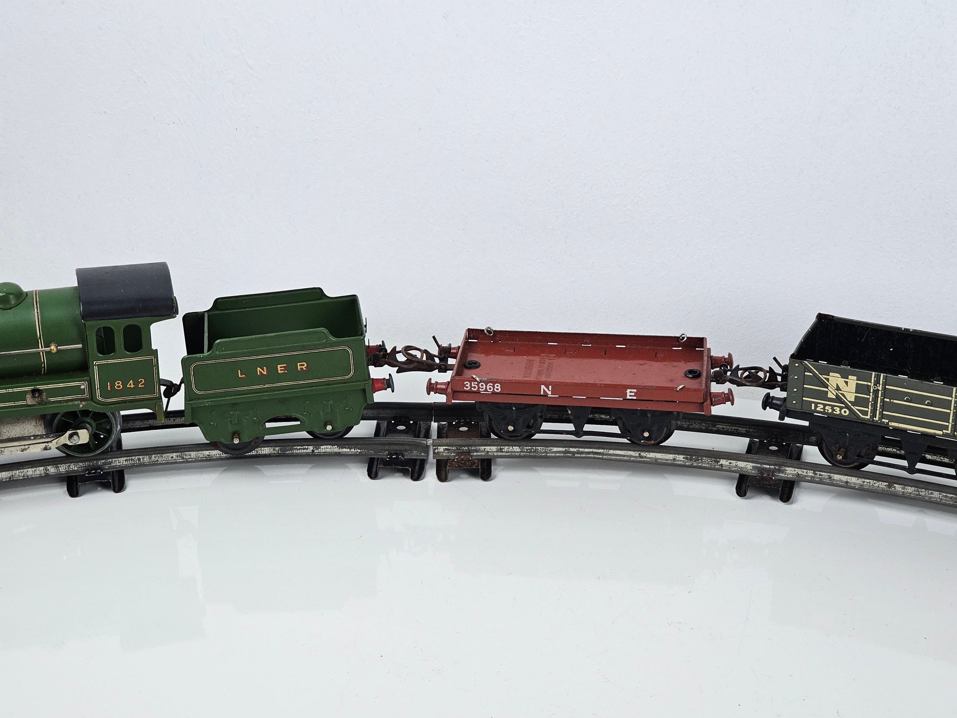 All aboard for fun with this vintage Hornby 'O' gauge LNER engine and tender! This clockwork set includes several goods wagons and a brake van, all tucked inside the original box with track. Fully working and ready to roll, it’s perfect for sparking joy in any train enthusiast’s or trip down memory lane.