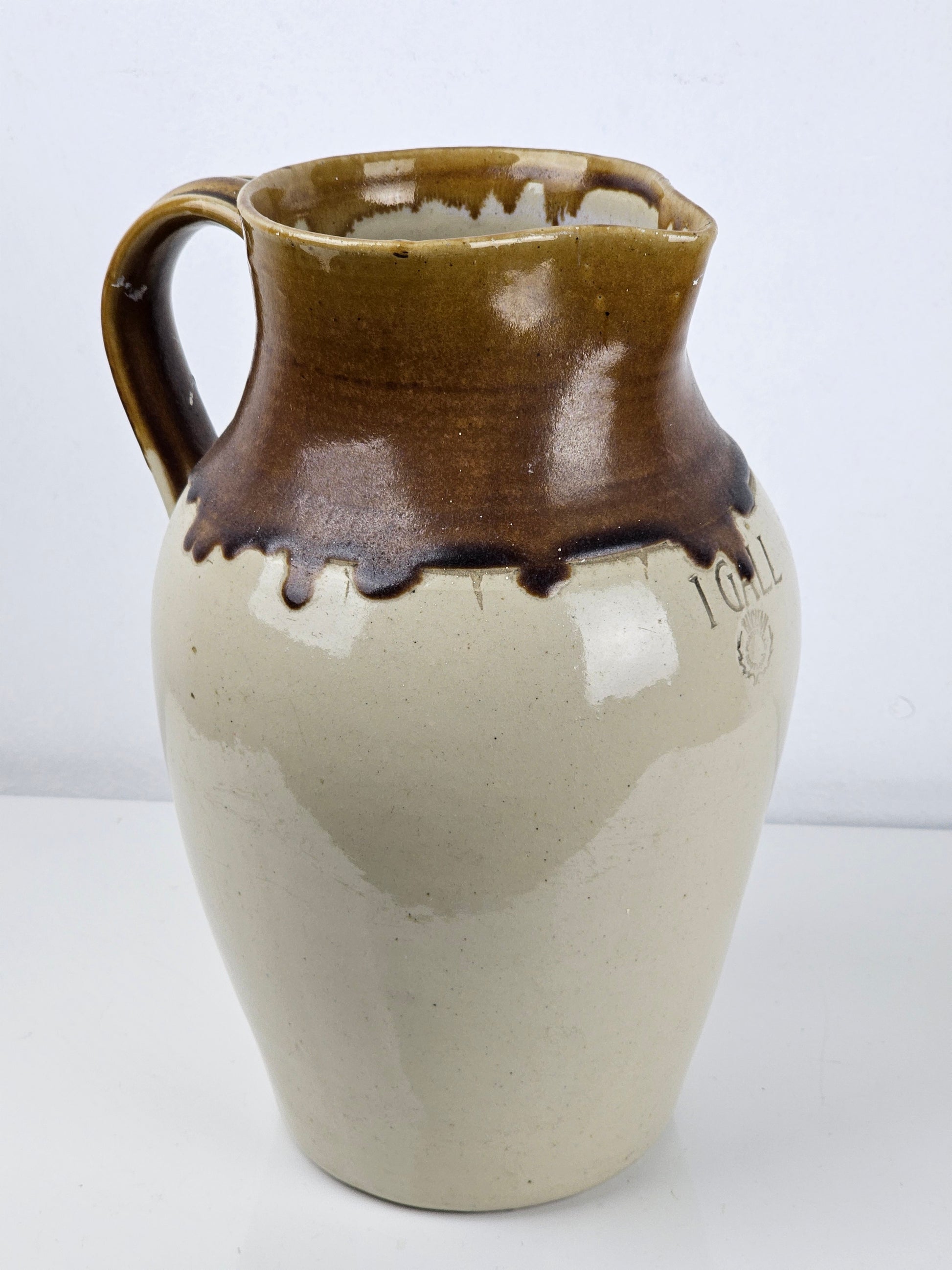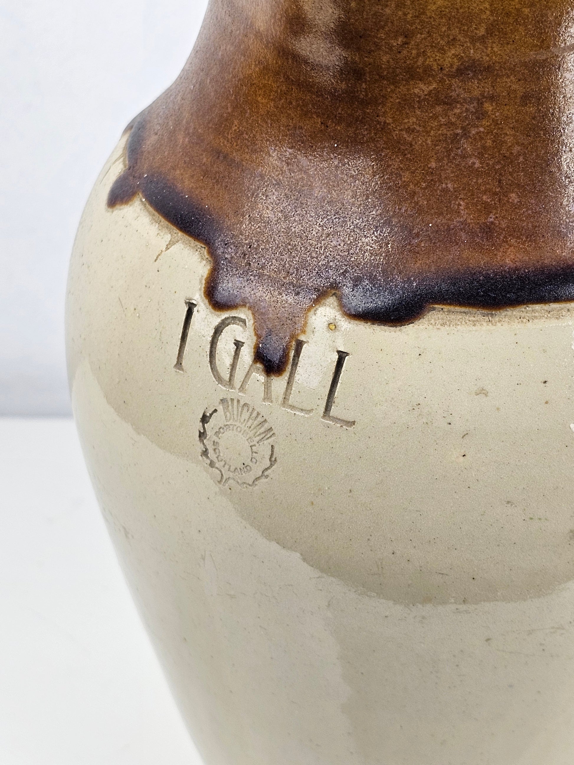 A very large and impressive Buchan stoneware jug in perfect condition. Stamped with a thistle, and I gallon in size.