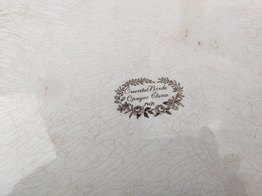 Smell the Sunday roast, or Christmas turkey... This beautiful large vintage meat plate Oriental Birds is sure to 'meat' your needs... Good marks to the base and with a fluted edge. It is decorated with birds in a tree, surrounded by a floral design in brown. In good condition with no chips or cracks, slight markings in places (see photos) contemporary with age and does not distract from the beauty and functionality. Would also look fab hanging on a wall.