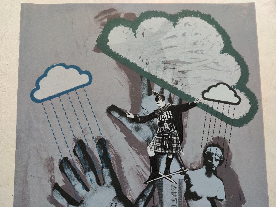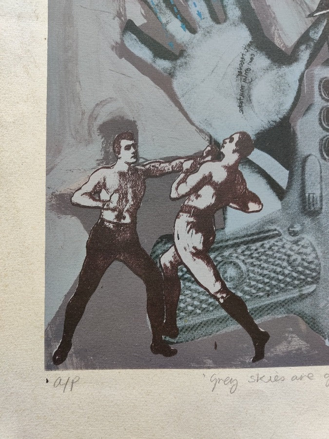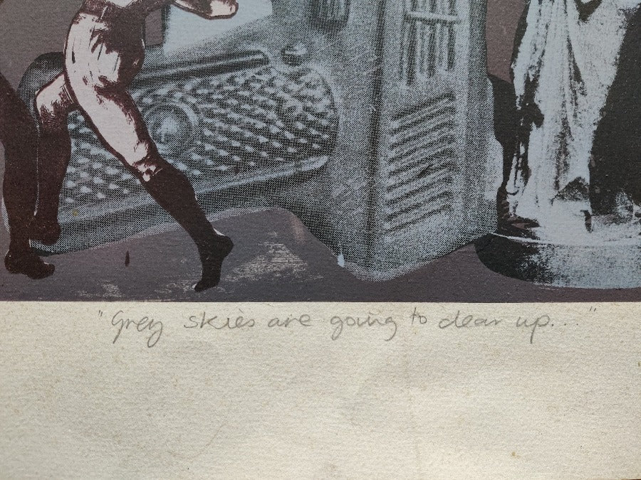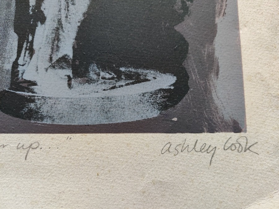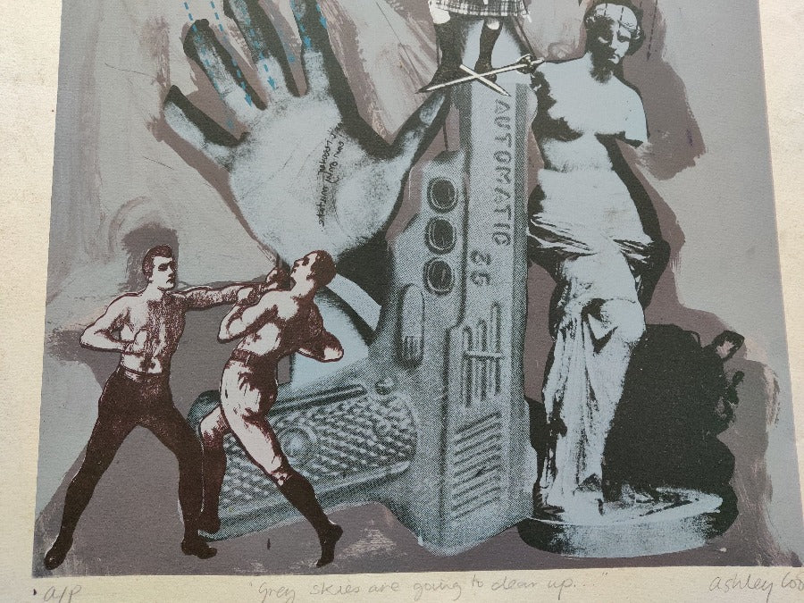 This is a fabulous unframed and signed original photomontage, silk screen and watercolour .