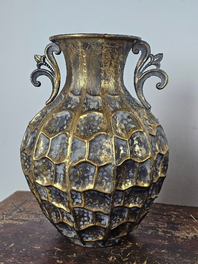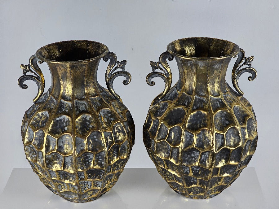 A lovely pair of large metal vases in the vintage style with a great patina and aged to make a statement. If you are looking for a large wow factor these might do the trick.