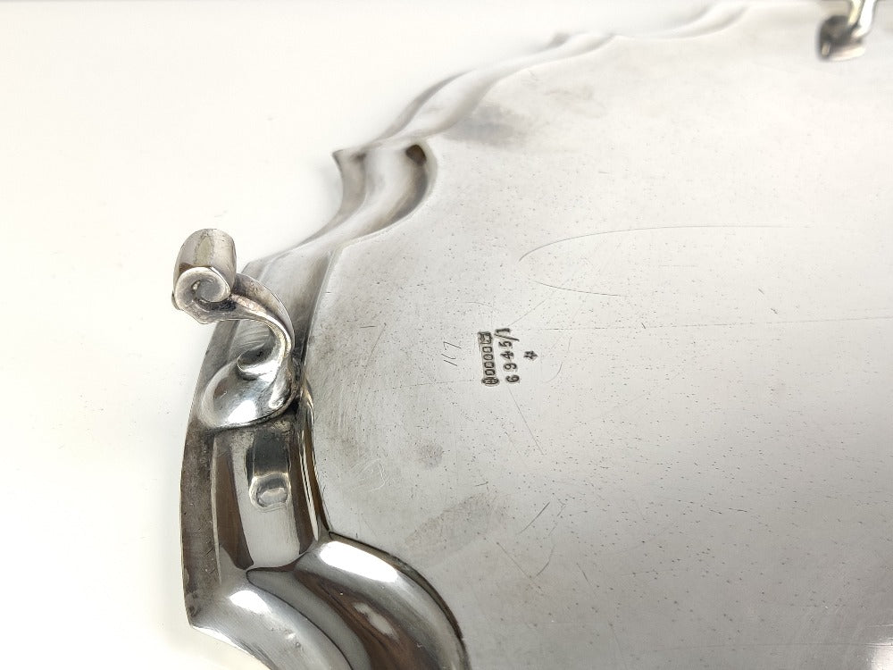 This beautiful, early 20th Century silver plated tray would be perfect for serving drinks at any dinner party. In good condition, it has a smooth interior with a lovely fluted edge and scroll feet. It would also look great used to display a decanter on.