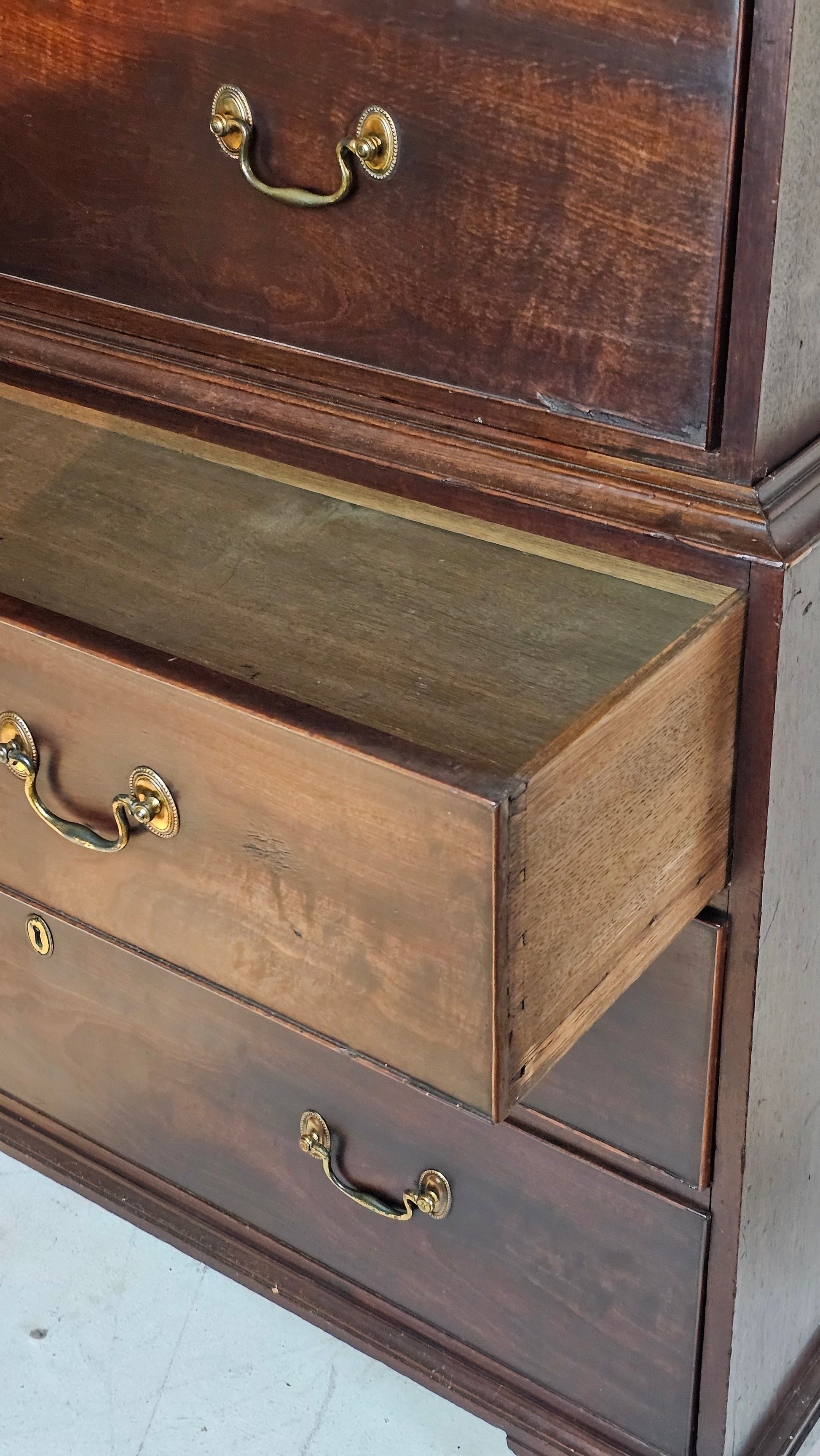 This is a fine 18th Century Georgian antique chest on chest/tallboy with beautiful brass and gilt handles, bracket feet and of good colour.
