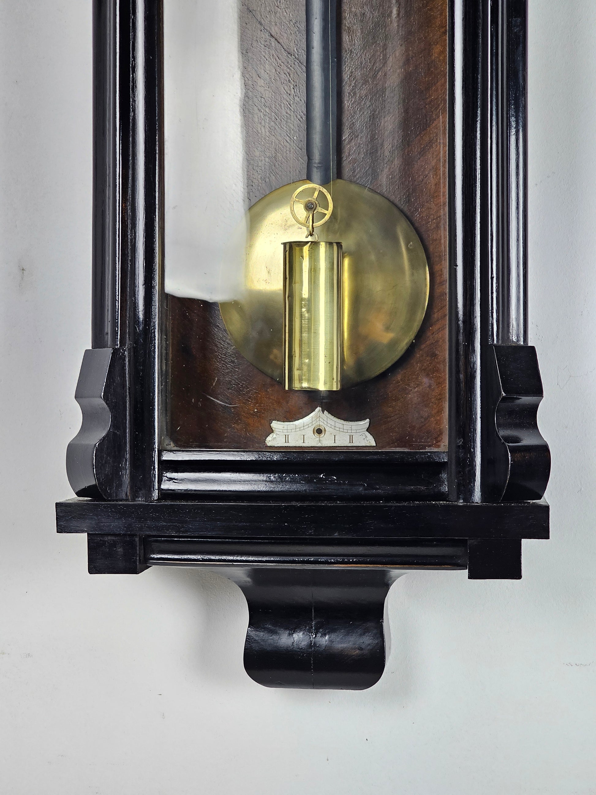 Antique ebony and walnut single weight Vienna Regulator wall clock.