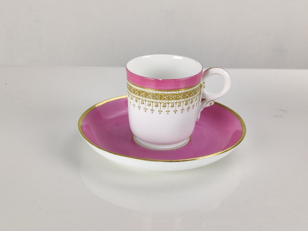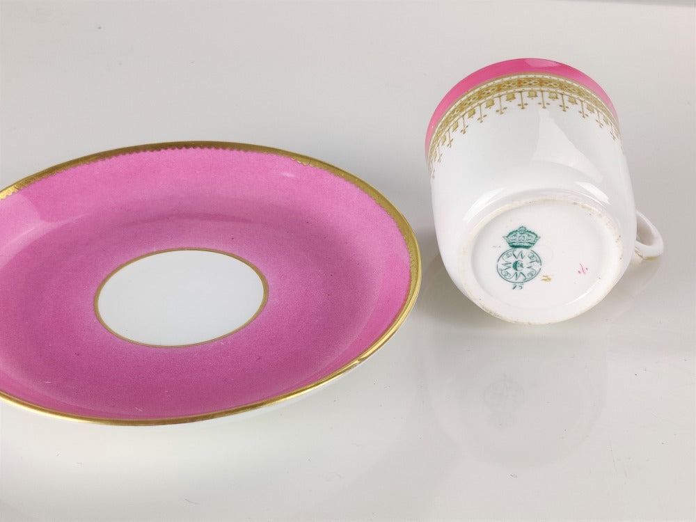 A stunning pink Worcester coffee can and saucer in perfect condition.